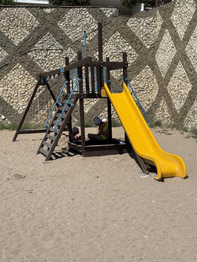 Детская площадка одно слово - одна горка и всё. При бронировании мне Виктория обещала анимацию два раза в неделю и ежедневные вечерние просмотры фильмов и мультфильмов- по факту не было. Анимация только по воскресеньям один раз в две недели!